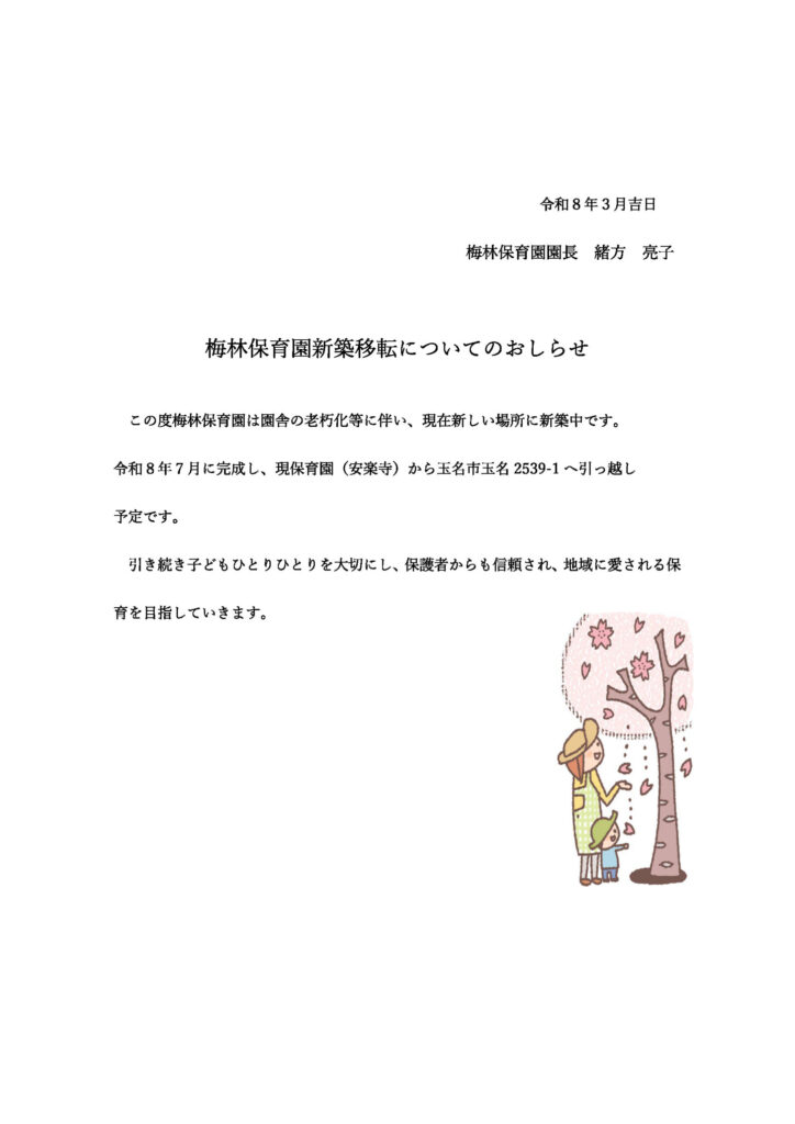 梅林保育園新築移転についてのおしらせ